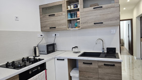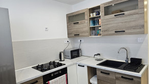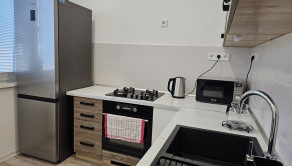 VYBAVENIE: v kuchyni sa nachádza chladnička s mrazničkou, varná doska, elektrická rúra, mikrovlnka, rýchlovarná kanvica, jedálenský stôl, stoličky, riad a príbor, v obývačke je  gauč, konferenčný stolík, obývacia zostava, PC stolík (možné využitie na home office), v spálni - manželská posteľ, vstavaná skriňa. Automatická práčka sa nachádza v kúpeľni.